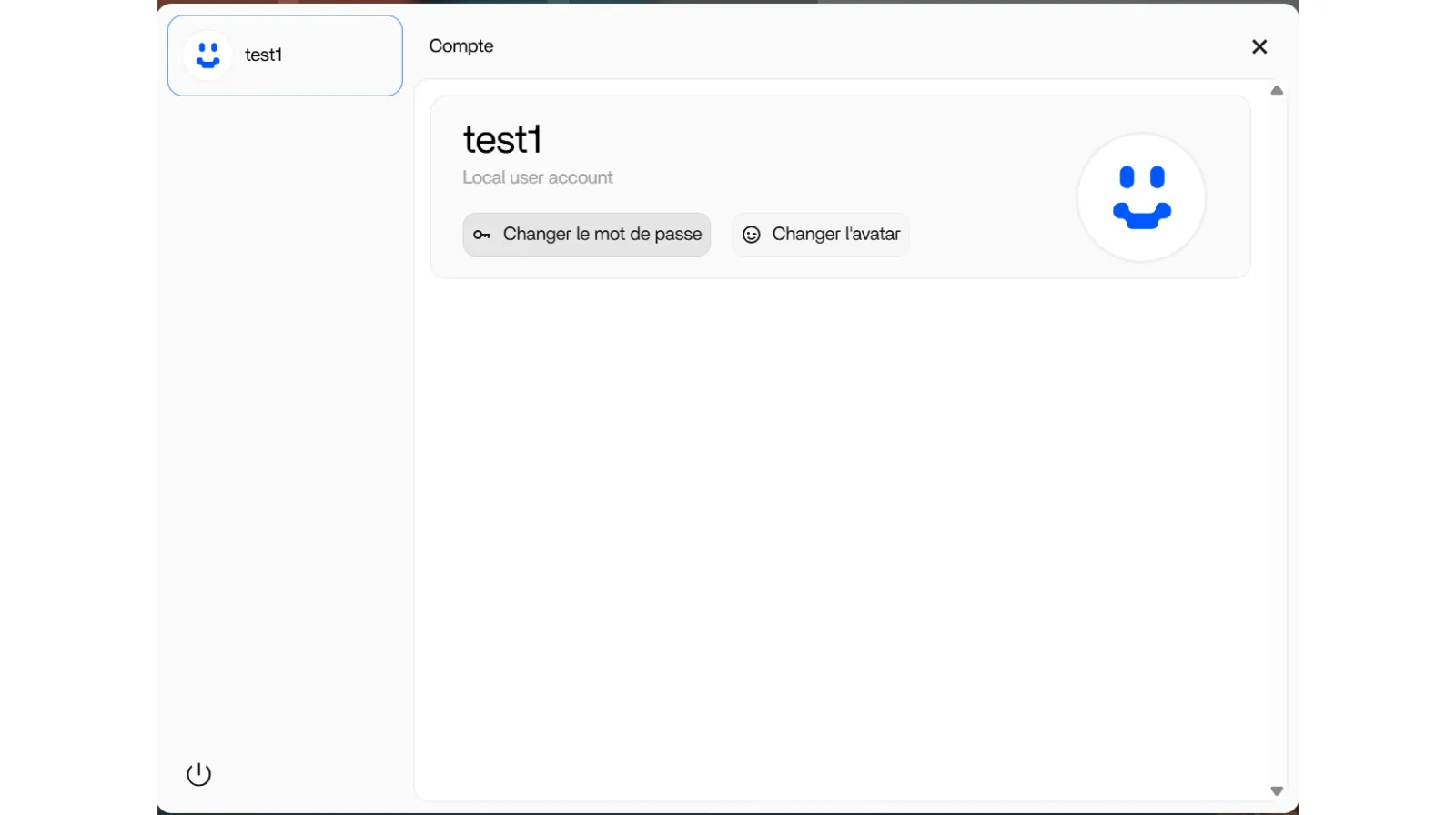 En cliquant sur l’icône Utilisateur en haut à gauche de l’écran, le nouvel utilisateur peut changer son mot de passe et personnaliser son avatar.