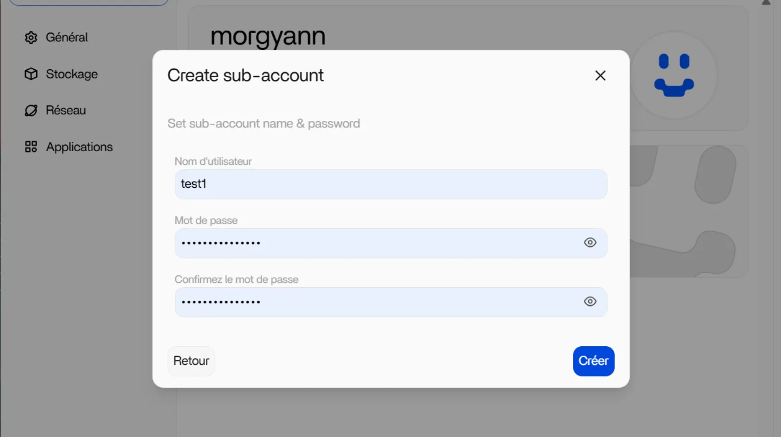 Settings -> votre compte Administrateur avec votre pseudo au premier onglet -> Sub-accounts -> Cliquez sur Create Sub-account