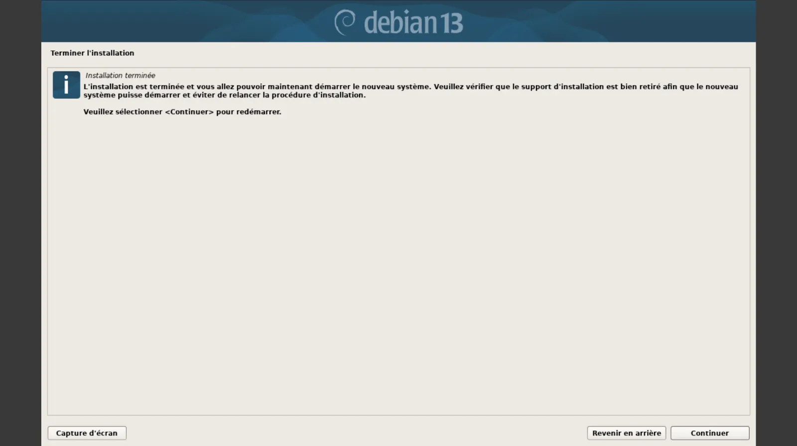 Sur la fin de l’installation, il est demandé de retirer le support d’installation – sinon le processus d’installation redémarrera à nouveau