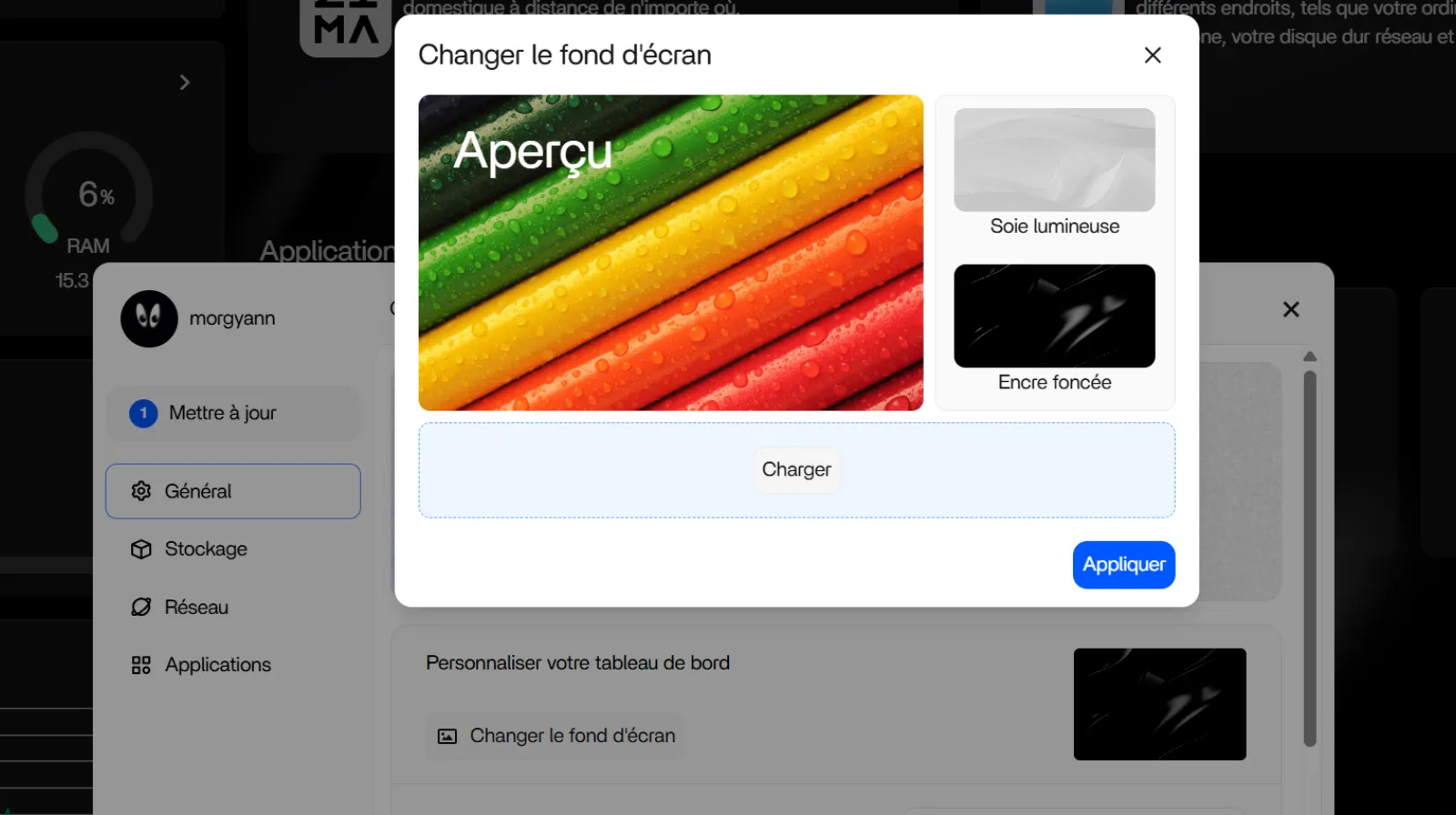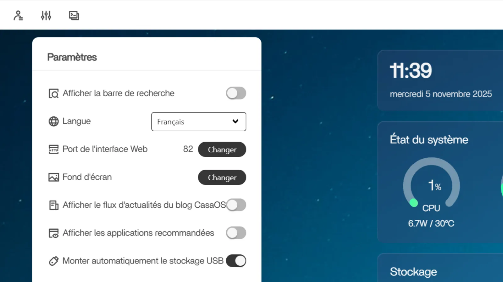 Sur ZimaOS ainsi que sur CasaOS, vous pouvez personnaliser le fond d’écran ainsi que l’avatar de votre compte.