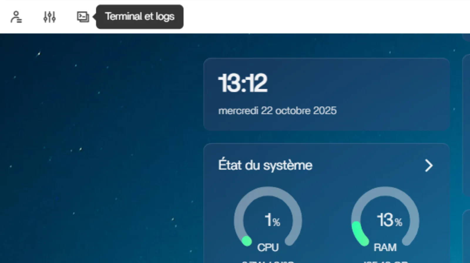 Cliquez sur l’icône Terminal, en haut à gauche de la page.