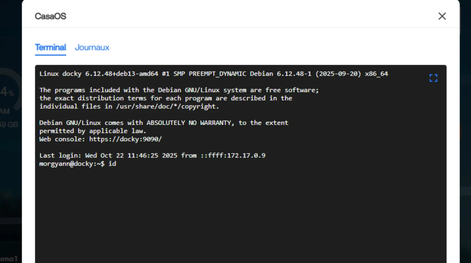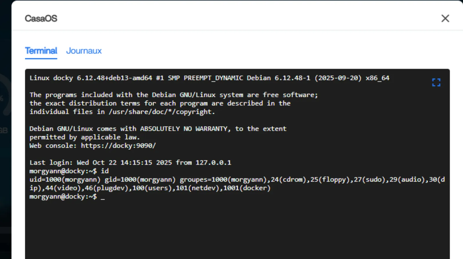 Sur ce CasaOS, l’UID est 1000 et le GID est 1000